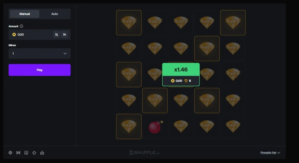 Each tile you reveal either adds to your multiplier if it’s safe or ends the game if it’s a mine.